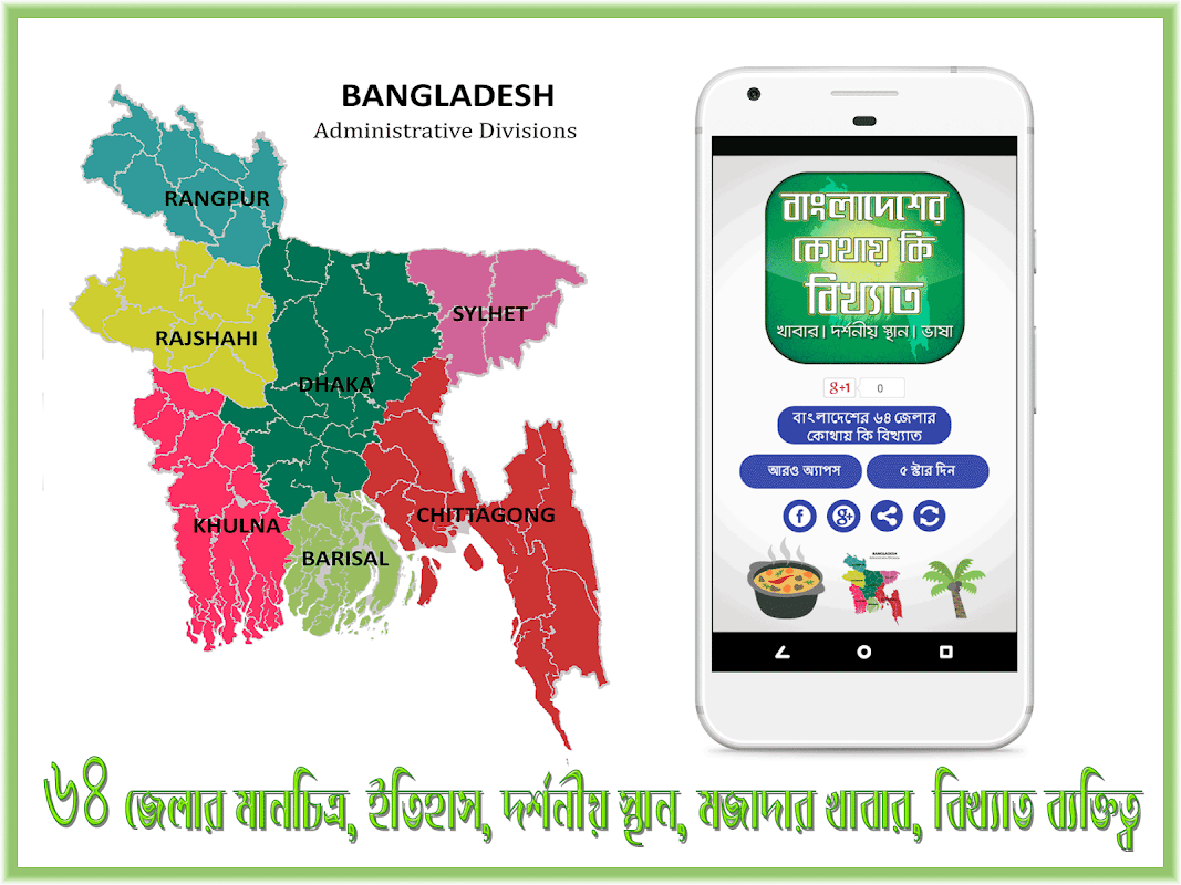 বাংলাদেশের 64 জেলার ইতিহাস, মানচিত্র, বিখ্যাত স্থান, খাবার, ভাষা ও ব্যক্তিত্ব