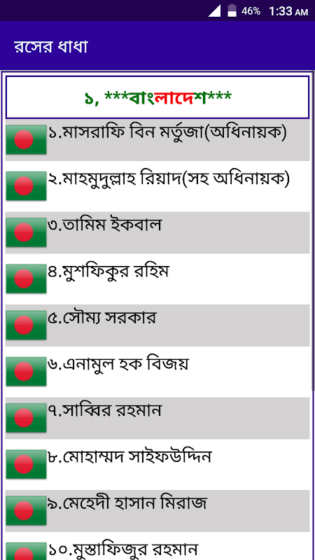 বাংলাদেশ বনাম শ্রীলংকা খেলোয়ার