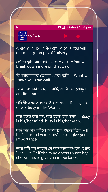 ইংরেজি একটি আন্তর্জাতিক ভাষা। পৃথিবীর সব দেশে ইংরেজী ভাষার প্রচলন আছে।তাই ইংরেজি শেখা অনেক গুরুত্বপূর্ণ।বাংলা থেকে ইংরেজি অনুবাদ ইংরেজি শেখার সহজ বই এর সবচেয়ে গুরুত্বপূর্ণ অধ্যায় কেননা বাংলা থেকে ইংরেজি অনুবাদ না জানলে ইংরেজি শেখা অনেক কঠিন হয়ে যাবে।আমরা অনেকেই ইংরেজি কথা বলায় ইংরেজি লেখায় অনেক দুর্বল।যার কারণে বিভিন্ন চাকরি ও প্রতিযোগিতা মূলক পরিক্ষায় খারাপ ফলাফল আসে।ইংরেজীতে দুর্বলতা কাটানো একটু সময়ের ব্যাপার। কিন্তু দৈনন্দিন জীবনে আমরা যেসব কথা একজন আর একজনের সাথে আদান প্রদান করে থাকি, সে সব বাংলা বাক্যকে ইংরেজি বাক্যে রূপান্তর করা শিখতে পারলে কারও সাথে সুন্দর ভাবে ইংরেজীতে কথা বলা চালিয়ে নেওয়া যায়।আর সে জন্য সহজে শিখে নেওয়া যায় এমন কিছু বাংলা বাক্যকে ইংরেজি বাক্য করে নেওয়া শিখবো এ অ্যাপ থেকে।