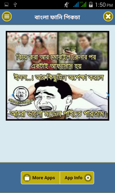 বাংলা ফানি জোকস বা মজার জোকস আপনাকে হাসানোর এবং বিনোদনের মাধ্যমে সারাক্ষণ হাসি খুশি রাখার অন্যতম মাধ্যম। আজকে এই অ্যাপ এ আমরা বাংলা ফানি পিকচার, বাংলা ফানি ট্রল নিয়ে এসেছি যা আপনার মনের সকল দুশ্চিন্তা দূর করে বাংলা চরম বিনোদনের মধ্যে দুবিয়ে রাখবে। আমাদের এখানকার বাংলা হাঁসির পিকচার এর মধ্যে রয়েছে বাংলা ফেসবুক মজার পিচ, বাংলা ফেচবুক ট্রল, বাংলা জোকস ফটো ইত্যাদি। আপনি হইত সারাক্ষণ মন খারাপ করে থাকেন এবং দারুন কিছু বিনোদনের খোঁজ করছেন যা আপনার মনকে বাংলা বিনোদনে রাঙিয়ে তুলবে তাই আপনাকে বলব আমাদের এই অ্যাপটি একবার হলেও দেখার জন্য।