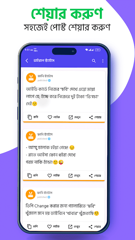 Funny Status Bangla অ্যাপটির মাধ্যমে আপনি নিজেও হাসতে পারবেন এব 이 앱은 다음과 같습니다.