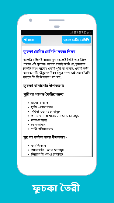 তাই আজ বিকালের নাস্তার রেসিপি মোবাইল অ্যাপটি ডাউনলোড করে নিন। আর ইচ্ছা মত যে কোন রেসিপি তৈরি করুন। এই অ্যাপটিতে ফুচকা রেসিপি, সমুচা, সিঙ্গারা, পুডিং, চটপটি, কাবাব, সেমাই, চিকেন রেসিপি সহ অনেক উন্নত মানের রেসিপি পাবেন। বিকালে চা এর সাথে যে কোন একটি আপনি নিজেই তৈরি করে খেতে পারেন। তাই আর অপেক্ষা না করে অ্যাপটি আজই ডাউনলোড করুন।