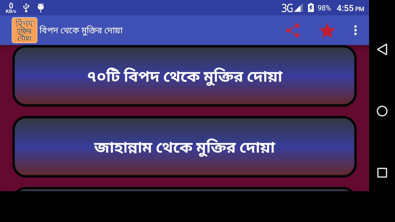 ছোট খাটো বিপদ আপদ থেকে মুক্তি লাভ করার বেশ কিছু দোয়া দিয়ে তৌরি করা হয়েছে আমাদের দোয়ার বই অ্যাপ টি.