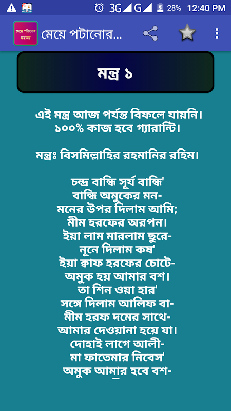 আজ আপনাদের জন্য নতুন কিছু নিয়ে এসেছি। আমাদের এই অ্যাপ এ রয়েছে মেয়েদের পাগল করার জন্য জাদুমন্ত্র ও তাবিজ। মেয়ে পাগল করার এই তাবিজের জাদুকরি শক্তিতে আপনাকে সহজেই আপনার মনের মানুষকে হাসিল করে দিবে।