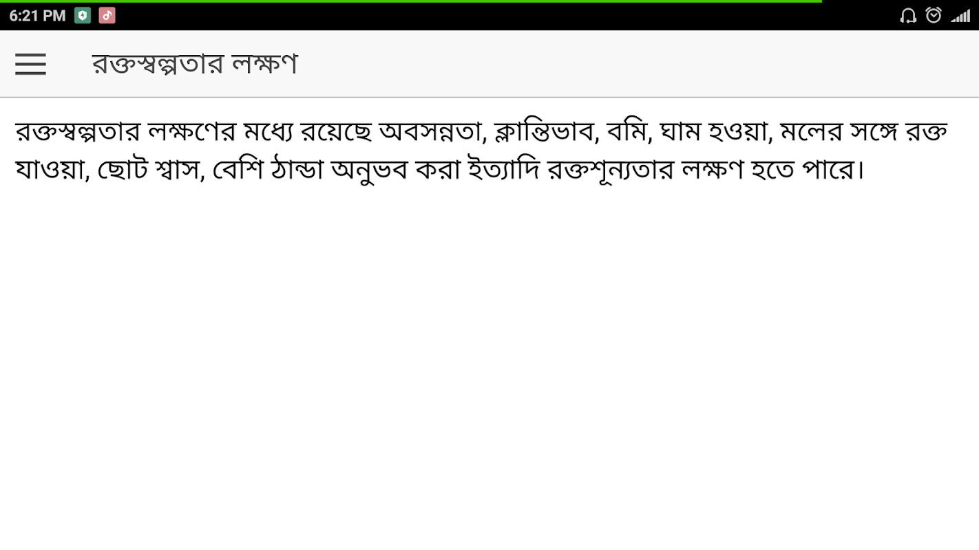 রক্তস্বল্পতার লক্ষণের মধ্যে রয়েছে অবসন্নতা, ক্লান্তিভাব, বমি, ঘাম হওয়া, মলের সঙ্গে রক্ত যাওয়া, ছোট শ্বাস, বেশি ঠান্ডা অনুভব করা ইত্যাদি রক্তশূন্যতার লক্ষণ হতে পারে।