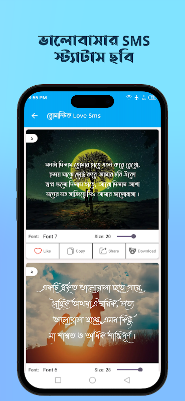 Bangla 로맨틱 사랑 지수 및 Bangla 로맨틱 사랑 SMS 이 앱에서는 Bangla 로맨틱 사랑 SMS, Bangla 사랑 SMS, 여자 친구/남자친구를 위한 로맨틱 Bangla 사랑 SMS, Bengali Bangla 사랑 지수 상태를 받게 됩니다. 나는 당신이 우리의 낭만적인 방글라 사랑 SMS와 같기를 바랍니다.