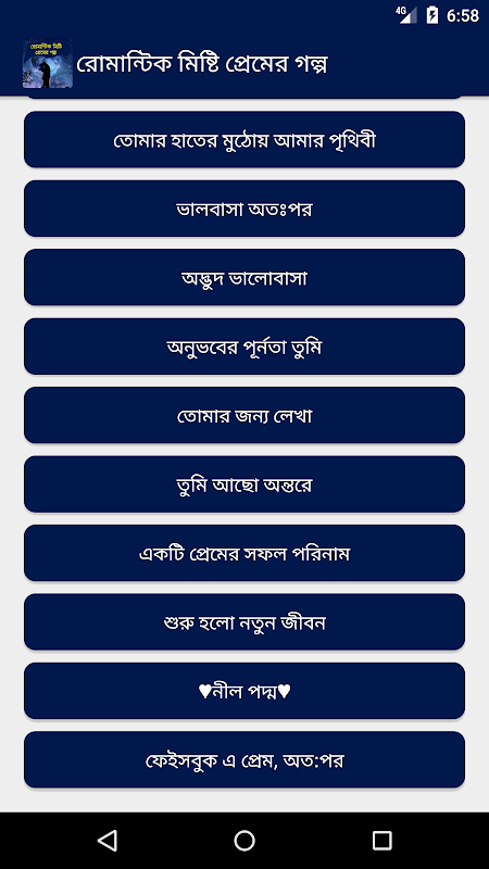 মানুষের জীবনে প্রেম ভালবাসা এক অন্যরকম অধ্যায় বা সূচনা । কারো জীবনে প্রেম আসে নীরবে আবার কারো জীবনে প্রেম আসে গোপনে । কেউ ভালবেসে সুখি হয় আবার কেউ ভালবেসে হারিয়ে যায়, । তাই বলে কিন্তু ভালবাসা কখনো শেষ হয় না । আসলে আমরা সবাই এক অদ্ভুদ মায়ার বাধনে আটকে আছি । তো যাই হোক আজকে আমাদের এই অ্যাপটি মূলত ভালবাসার গল্প নিয়ে করা হয়েছে । একগুচ্ছ নতুন ভালবাসার গল্প দিয়ে সাজানো এই অ্যাপটি । ভাল লাগবে আশা করছি।