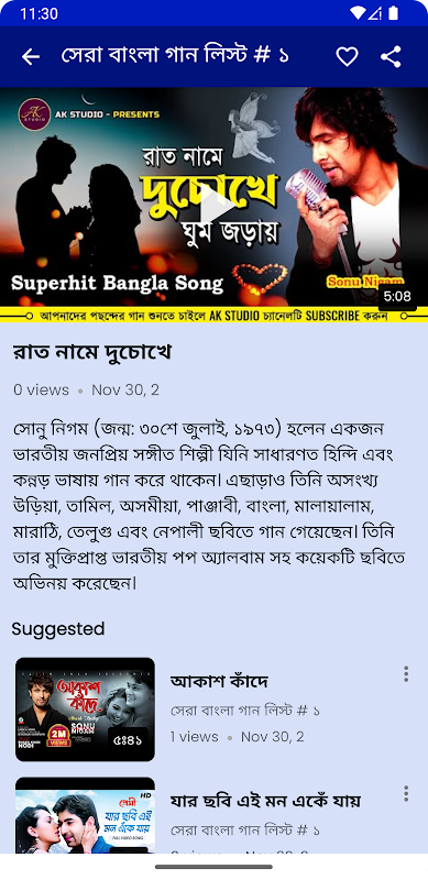 - Bengali Songs Sonu Nigam 노래 목록 기능