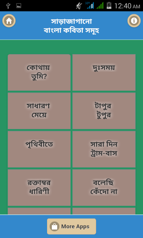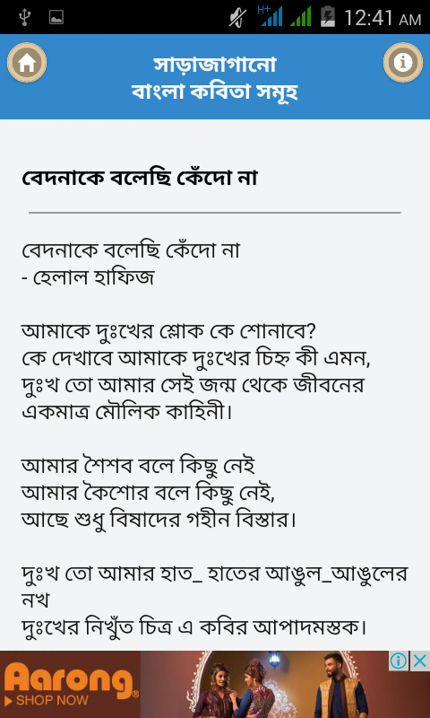 Poem has a deep relationship with Bengali history and culture, in this application we have included number of poems that you must and enjoy. All the poems are selected from most famous writers of the country.