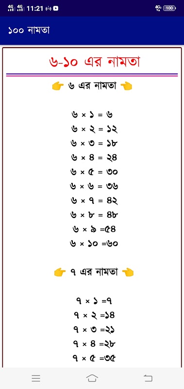 আমাদের ছোট এই অ্যাপসটিতে ১ থেকে ১০০ এর নামতা খুব সুন্দরভাবে দেওয়া আছে।