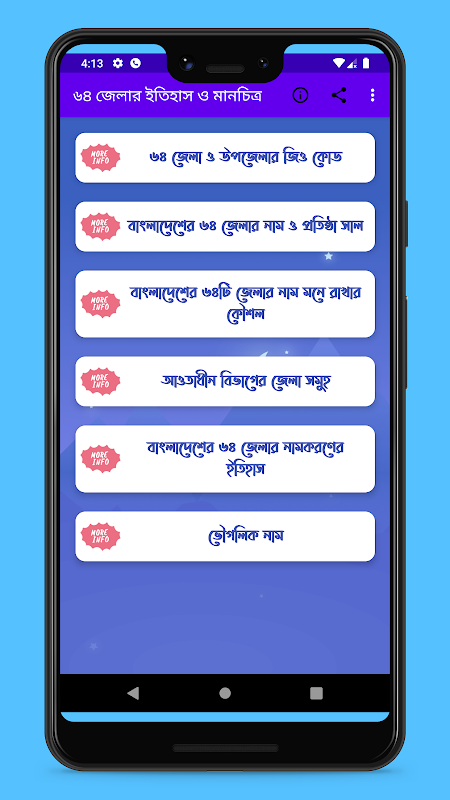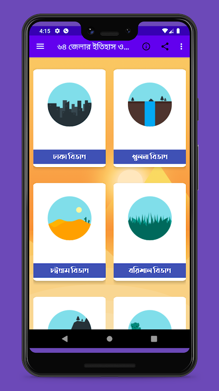 বাংলাদেশের ৬৪ জেলার ইতিহাস ও মানচিত্র এবং সকল জেলার তথ্য একটি শিক্ষা মূলক অ্যাপ যা বাংলাদেশ সম্পর্কে সাধারন জ্ঞানার্জনে অত্যন্ত সহায়ক।