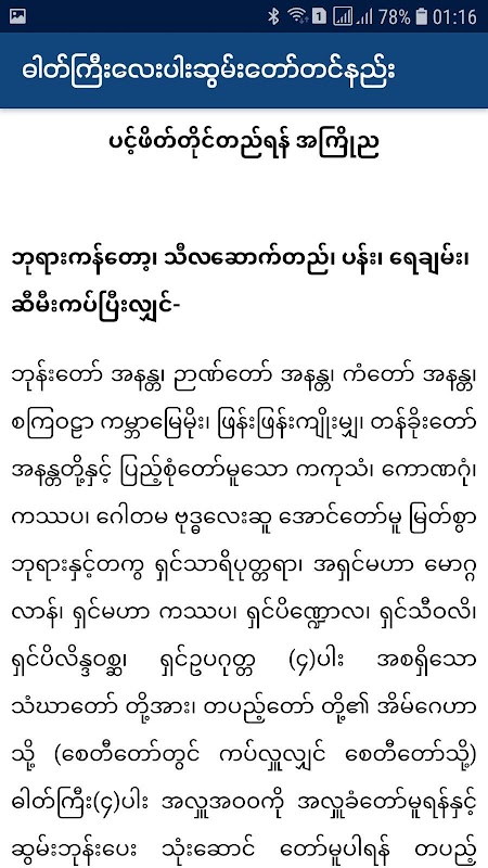 이 모바일 앱 버전 1.0은 미얀마 유니 코드 글꼴이있는 전화기에서 더 잘 작동합니다. 다음 버전에는 Zawgyi Font가 포함됩니다.