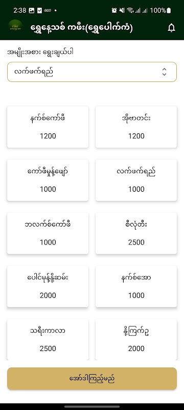 ရွှေနေ့သစ် ကဖီး(ရွှေပေါက်ကံ)ဆိုင်၏ မီနူးမျာ း ကြည့်ရှုရန် ဖြစ်ပါသည်။