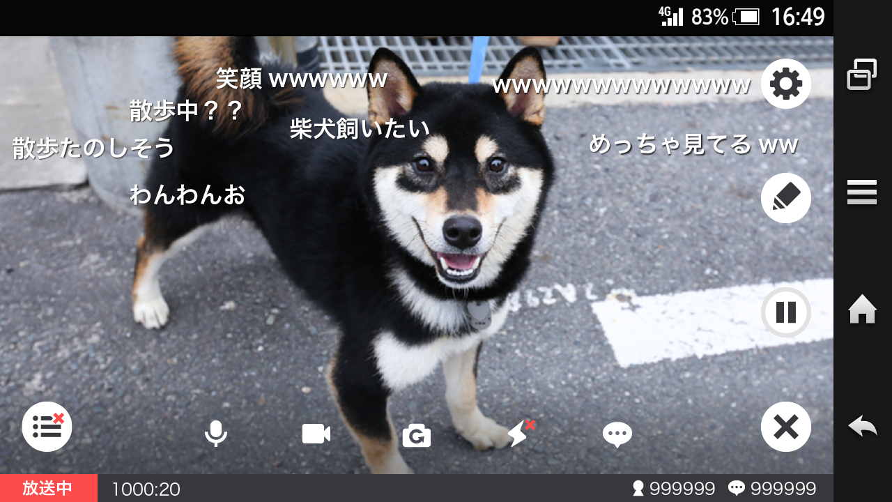 このアプリから、ニコニコ生放送(ニコ生)を配信することができます。