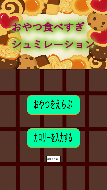 毎日指定のおやつを食べ続けると、1日後、1週間後、1か月後、1年後、どうなるかをボタン1つで計算するシミュレーションゲーム!