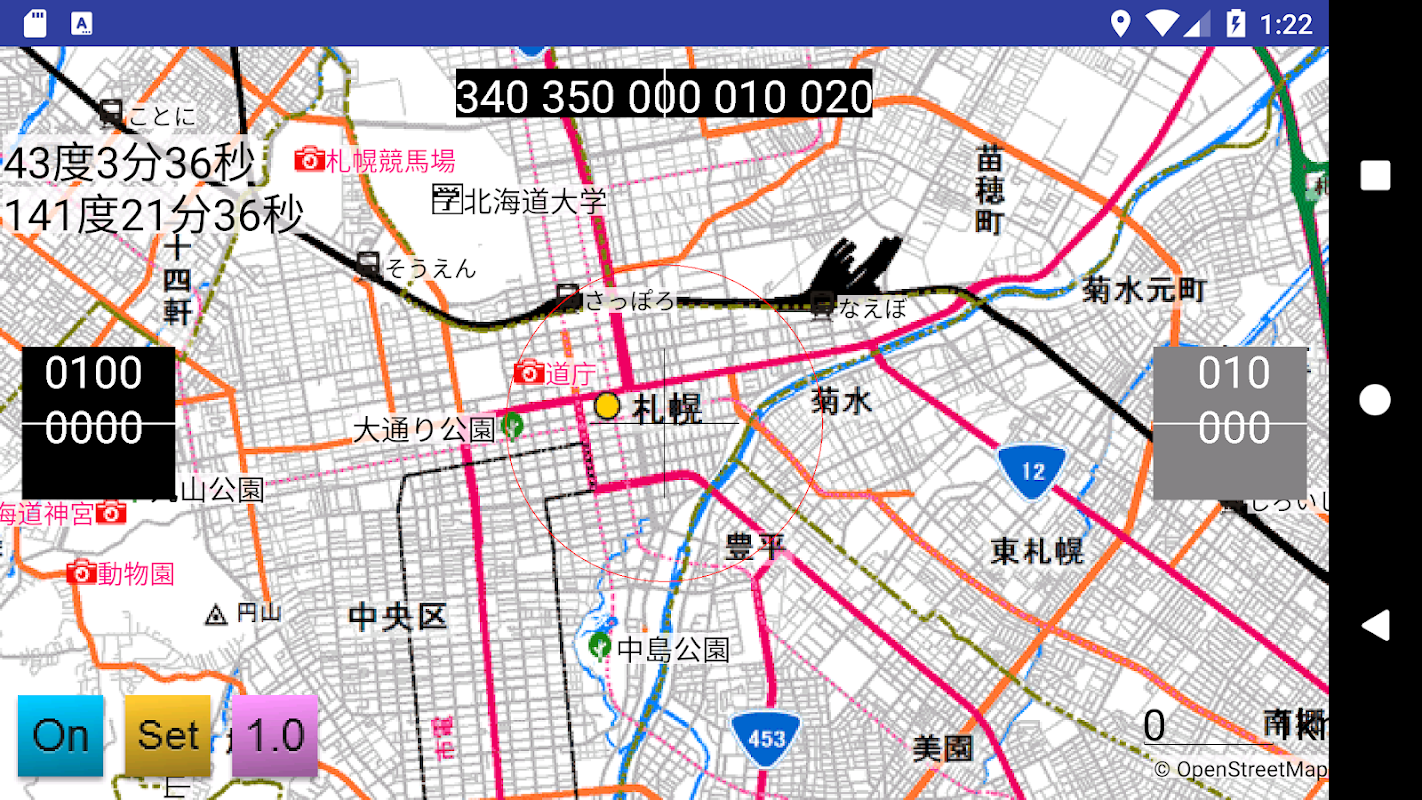 位置情報が[Off]の状態で、[Map]ボタンを選択することにより、各地域へ移動することができます。β版ですので札幌エリア以外の方は、地図表示がほぼない状態で起動すると思いますので、ここで札幌の地図を選択してください。