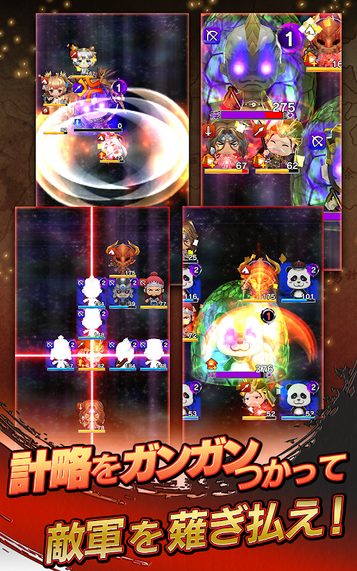 4人の武将でデッキを組み、指で武将をグリグリ動かして、敵を倒すのが気持ちいい!!