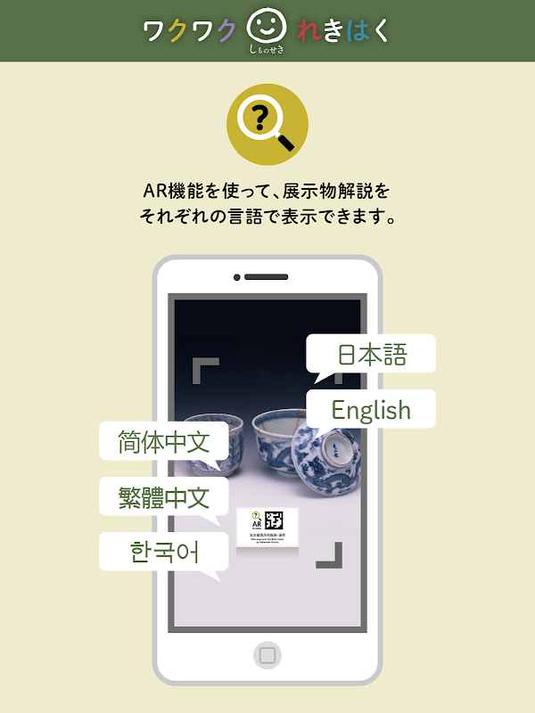 전시회 해설 AR는 5 개 국어 [일본어, 영어, 중국어 (간체), 중국어 (번체), 한국어] 대응으로 해외에서 방문객 분들도 만끽하실 수 있습니다 .