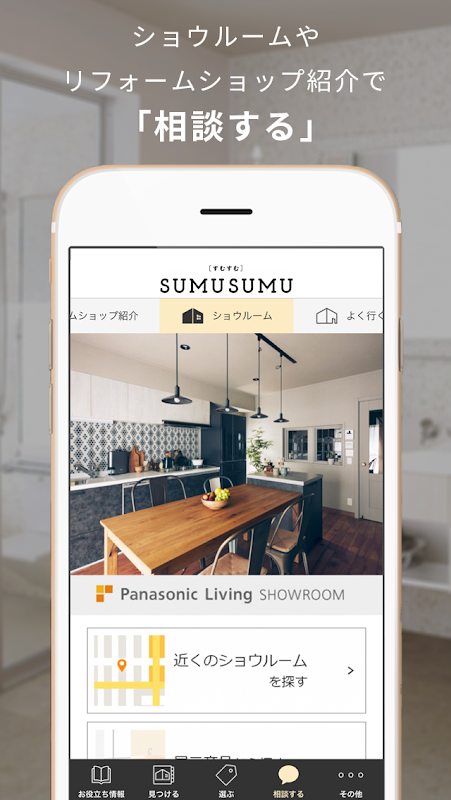最寄りのショウルームを検索し、お越しいただければ新しいくらし体験や、最新設備の使い勝手が体験できます。