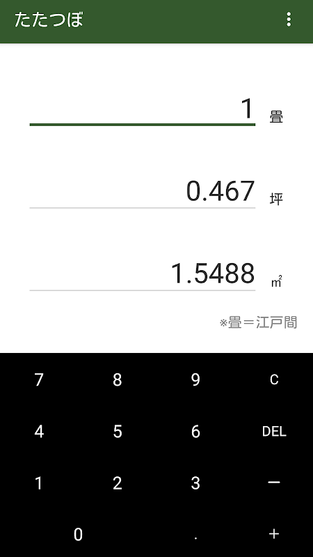 ・畳を坪と平米に変換できます