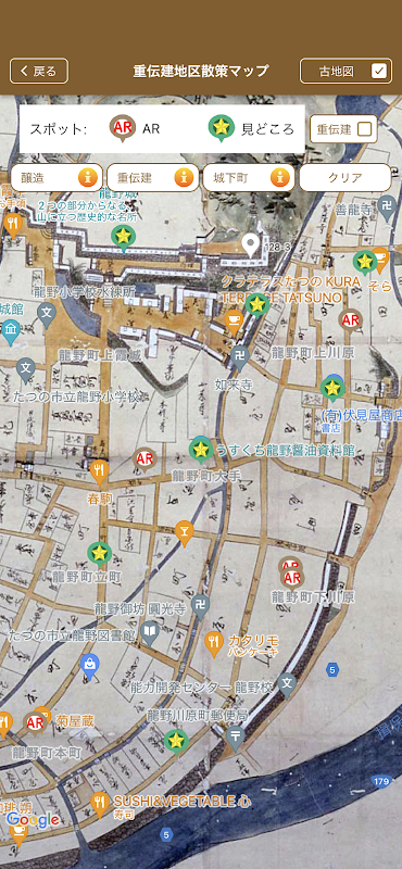 龍野 성시의 거리 산책이 더욱 즐거워지는 AR 앱