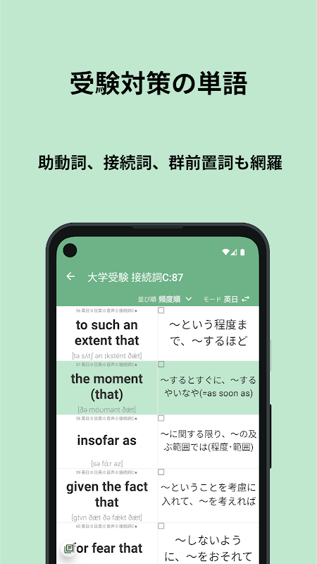 단 대학 수험은 실제로 대학 입시의 영어 시험에 출제된 단어와 그 용법을 세밀하게 분석하여 만들어졌습니다.