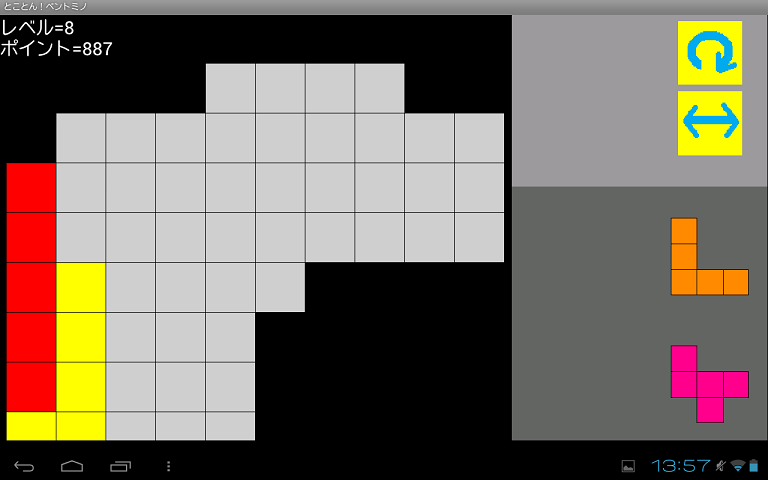 *すべてのピース(ペントミノ)をぴったりおくと1つの問題をクリア。