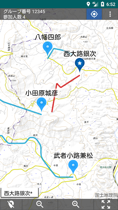 位置を共有したい人に口頭やメールでグループ番号(とパスワード)を伝えてログインしてもらえば他メンバーの位置が地図上に分単位で更新されます。移動した軌跡を表示することもできます。その場の人達で手っ取り早く位置情報を共有したい際にご利用ください。地図表示は山でも安心な国土地理院地図を採用しています。