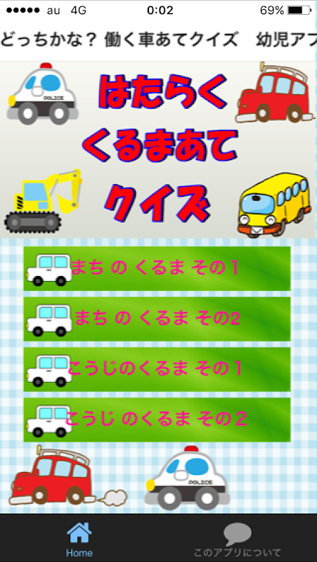 完全無料の幼児子供向けアプリ。働く車をあてる知育クイズです。子供と一緒に楽しく遊ぶことで知能学習に効果があります。泣きやみにもお役立ちますよ。
