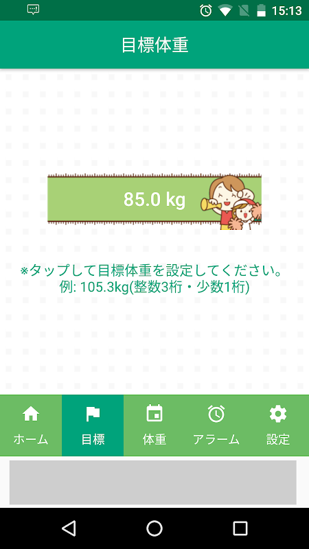 ・目標体重画面・・・目標の体重を設定します。グラフ上でも表示されます。