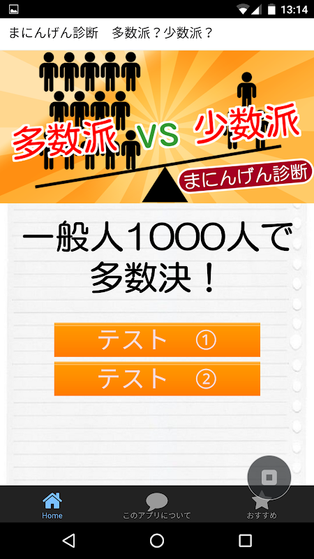このアプリは、無料で簡単な質問に答えるだけで、世間と比べて「あなたが多数派なのか?少数派なのか?」が簡単に診断出来るようになっている多数決アプリです。