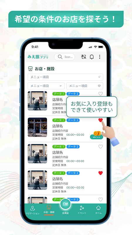 ※앱에 게재되고 있는 가게·시설이 모두 지역 포인트 가맹점과는 한정되지 않으므로, 앱내의 「포인트 마크」에서 가맹점의 확인을 부탁드리겠습니다.