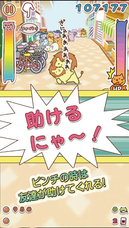 走った距離と魚屋を襲撃したみっちりねこの数などによってスコアが決まるよ!