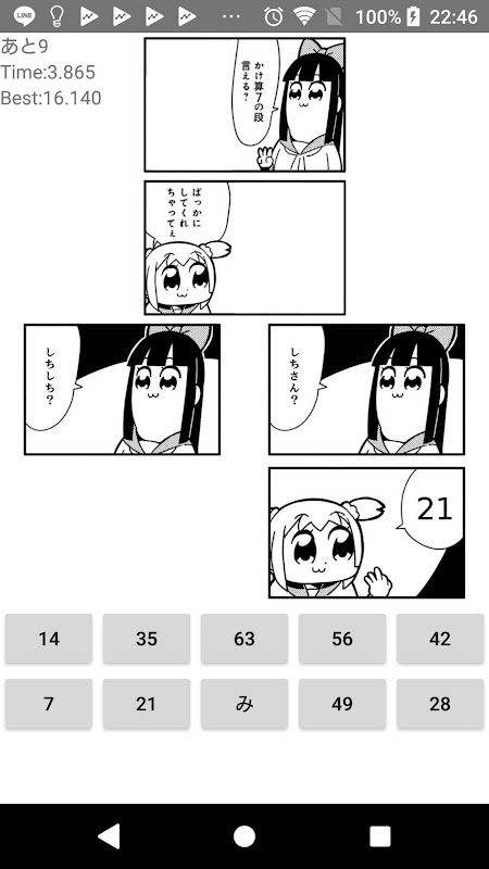 ポプテピピックのポプ子がかけ算の7の段を答えるkusoアプリ