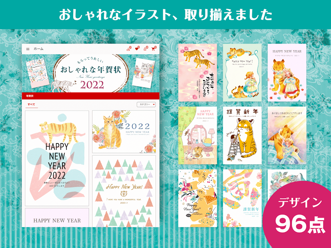 「もらってうれしい おしゃれな年賀状 2022」書籍版から、人気作家16名のデザインをご用意。