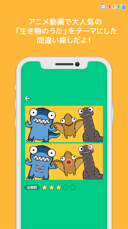 딱정벌레와 공룡, 사자 등 다양한 생물로 실수 찾기를 즐길 수 있다!