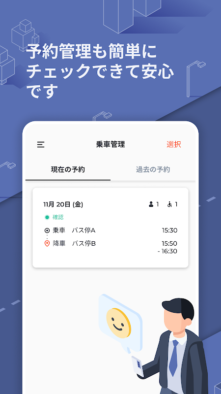 요사노마치(이와야・시장 에어리어, 야마다 에리어, 이시카와 에리어, 쿠와사이 에리어)에서 운행하고 있는 예약형 승합 교통의 예약을 실시할 수 있습니다.