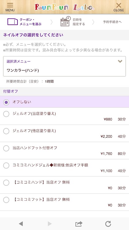 원하는 메뉴에서 날짜와 시간을 지정하여 보내는 것만으로 예약을 의뢰하실 수 있습니다.