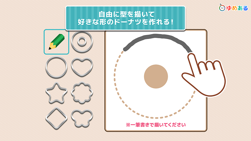 간단한 조작으로 자신 만의 오리지널 도넛을 만들 수 있습니다.