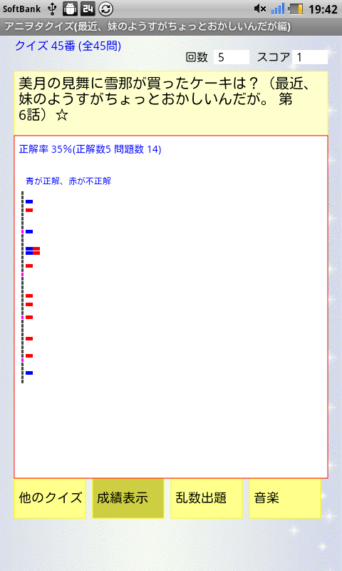 クイズの成績をファイルに保存でき、各設問の正解状況を表示することもできます!