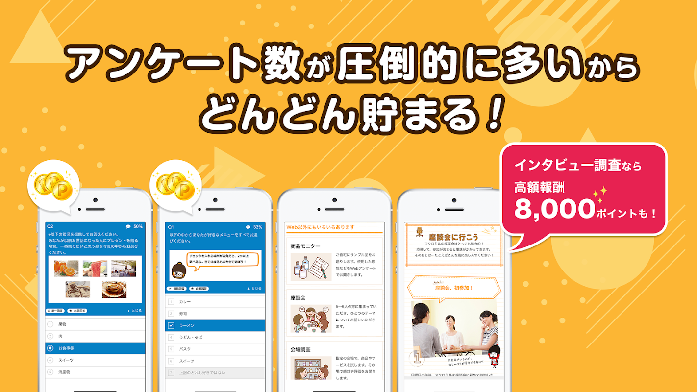 ・8,000P 이상의 높은 포인트를 받을 수 있는 인터뷰 조사도 다수