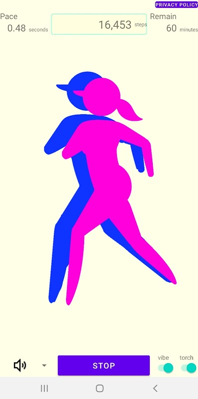 音や振動、カメラトーチでウォーキングのステップリズムをお知らせするシンプルなユーティリティアプリです。