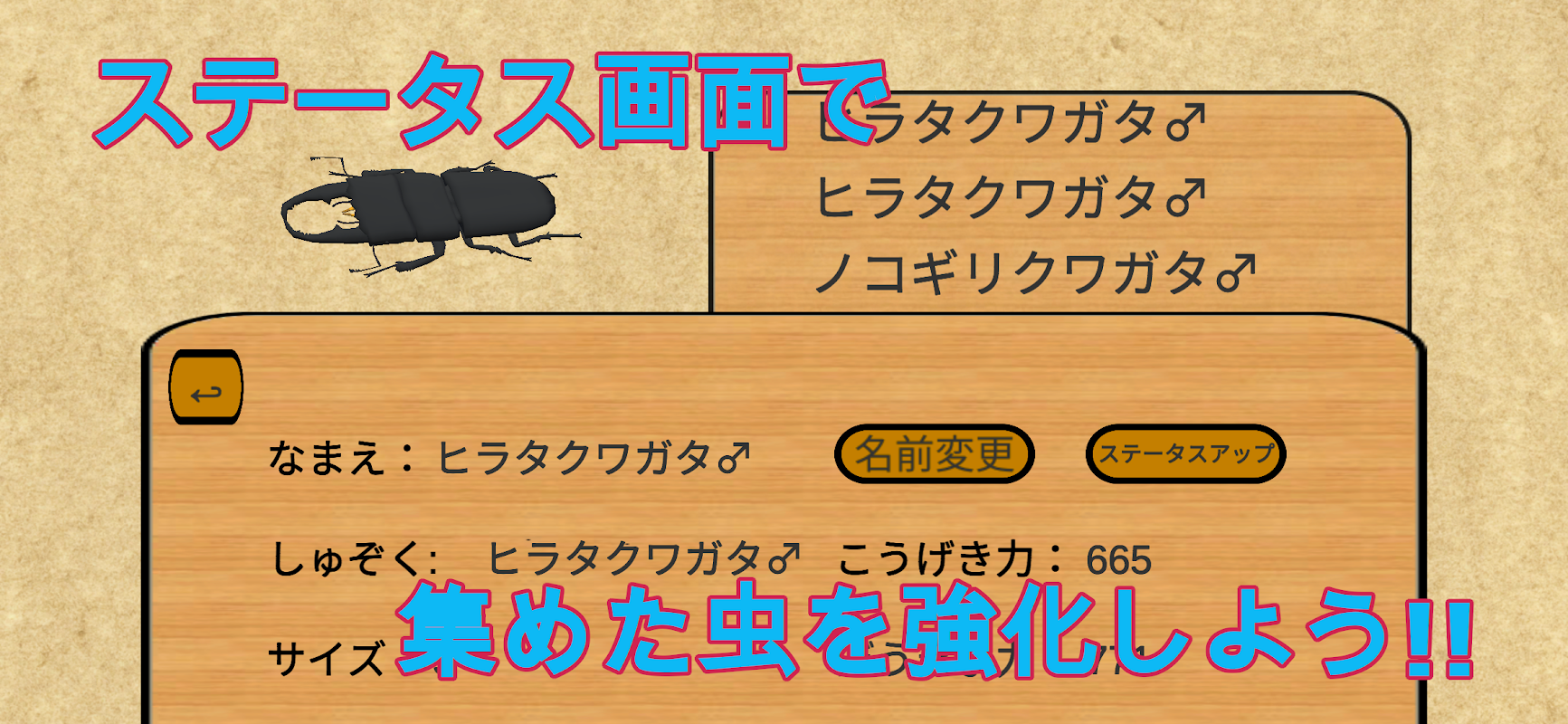 이 게임의 벌레의 힘은 공격력과 방어력에 의해 결정됩니다. 상태 화면에서 둘 다 강화합시다! !