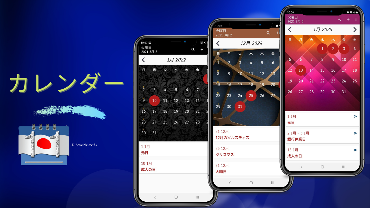 • 달의 이름을 클릭하면 해당 달의 일본 휴일 이벤트가 표시됩니다.