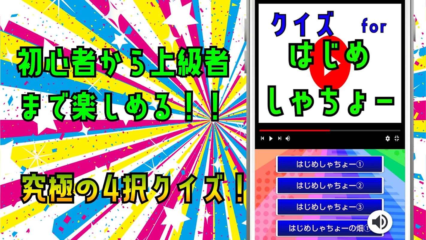 대인기 youtuber 「처음 샤쵸」에 관한 퀴즈 앱입니다. 소개 샤쵸쵸이나 처음 샤쵸의 밭에 관한 문제 등, 폭넓은 분야에서 출제!
