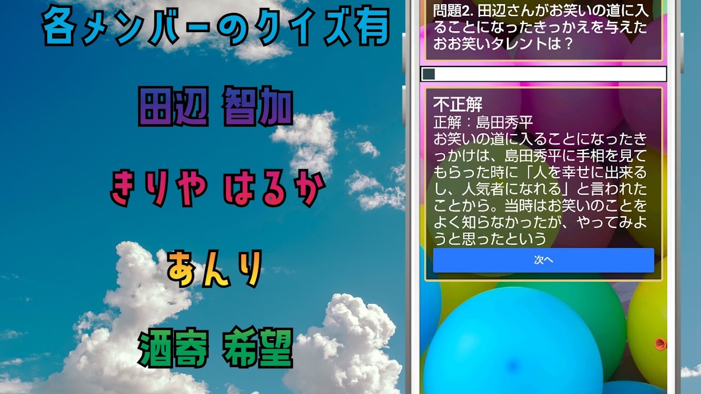 대인기 코미디언 "보루 학원"에 관한 퀴즈 앱입니다. 보루주쿠는 요시모토 흥업 도쿄 본사에 소속된 일본의 여성 코미디카르테트.