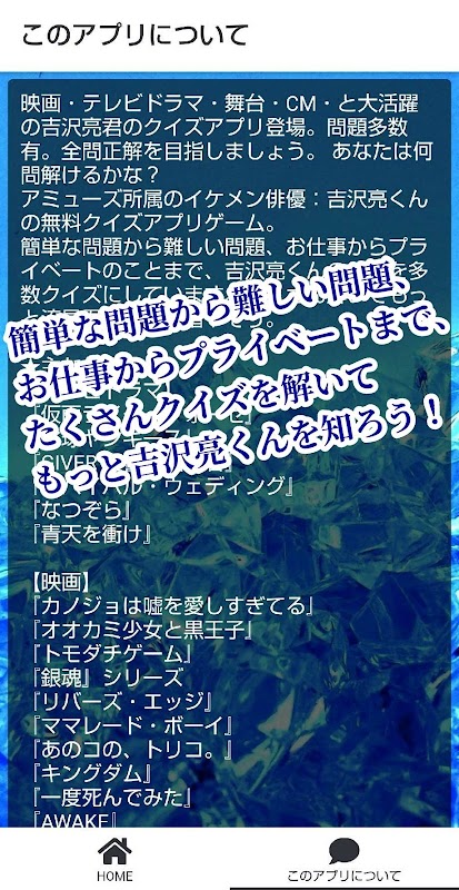 アミューズ所属のイケメン俳優:吉沢亮くんのクイズアプリゲーム。