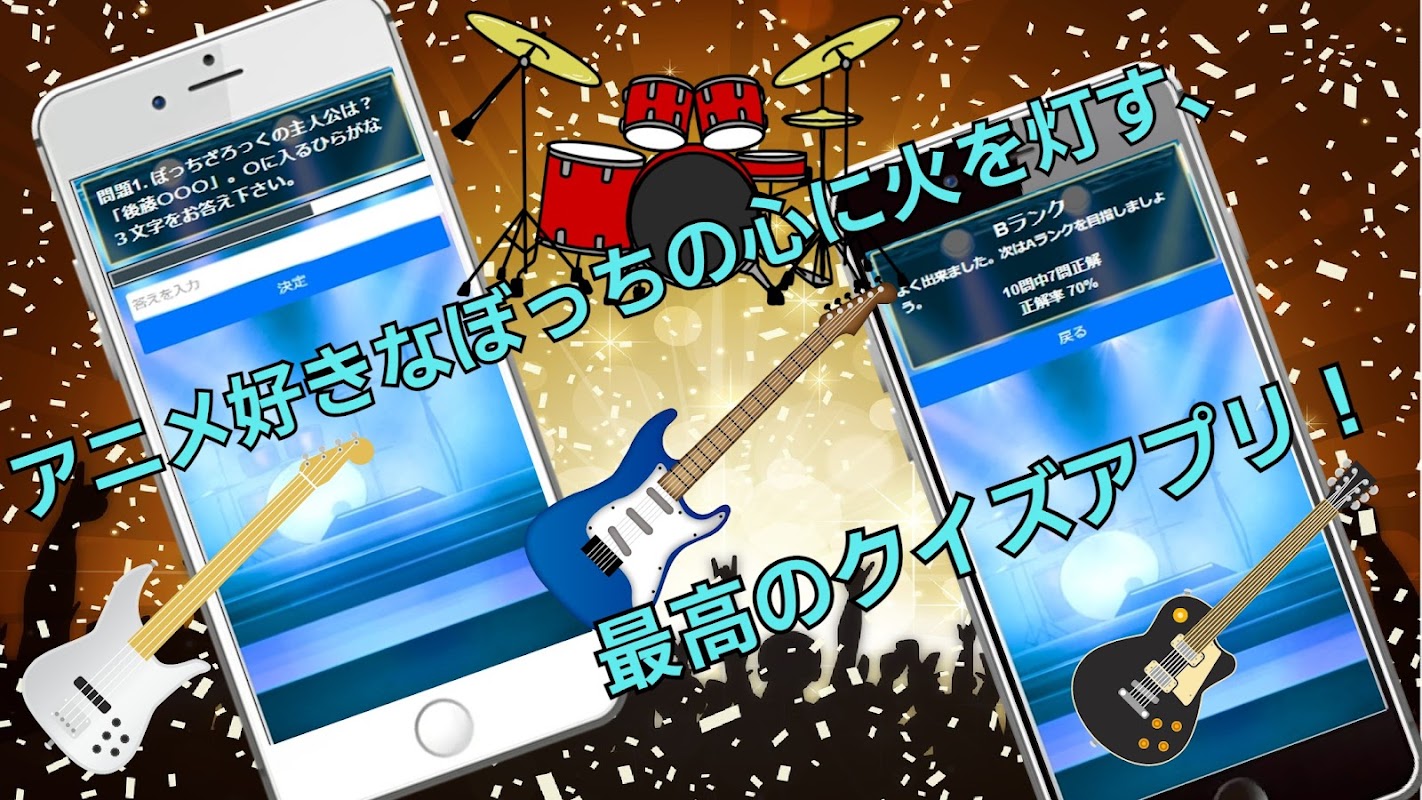 대인기 애니메이션 봇치자로쿠(BOCCHI THE ROCK)의 퀴즈 앱 등장. 만화·애니메이션·등으로부터 폭넓게 문제를 내고 있습니다. 비공식 앱입니다.