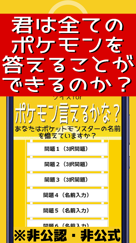 「クイズforポケモン言えるかな?名前当てゲーム/ポケットモンスターの名前憶えてる?非公式非公認アプリ」は、ポケモンgoにも登場するポケモンが出題される、画像から名前を答えるクイズゲームアプリです。【非公認・非公式の無料アプリです】
