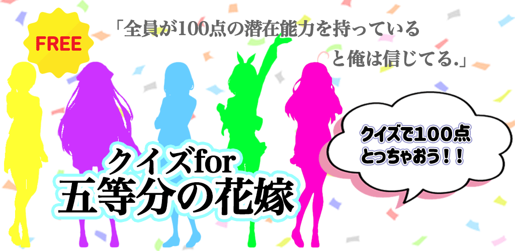 애니메이션이나 만화로 대인기의 5등분의 신부(그리고 우분의 하나요메)의 퀴즈가, 전 100문! 팬들도 만족의 시간을 부수기위한 무료 퀴즈 앱이됩니다.